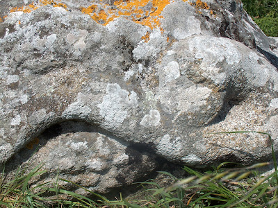 O ponto seguinte, onde a minha viagem pelos elementos me levou, foi a pedra da serpente alada, no elemento Terra. Quando acariciei a cabeça e uma das asas da serpente, senti a alteração do espaço/tempo de um modo brutal, quase de imediato tive medo e afastei-me... contudo, as imagens mentais e os sentimentos resultantes desse escasso momento estão ainda entranhadas em mim. Uns dias depois, peguei por acaso num livro do Juan Atienza que me falava da simbologia da ave e da serpente. Fiquei perplexa. Não consigo habituar-me a este tipo de estranheza...